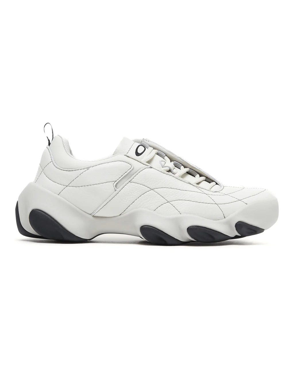 Uma nova forma escultural construída em couro de vitelo macio. O Flesh Warp estreia com uma sola moldada sob medida e um sistema de cadarço descentralizado que envolve o pé com uma tensão sutil. Na cor Vaporous Grey, o cabedal e a sola se encontram em um tom de cinza claro, pontuado por detalhes em preto na parte inferior. Uma expressão minimalista, porém precisa, da energia arrojada da silhueta.